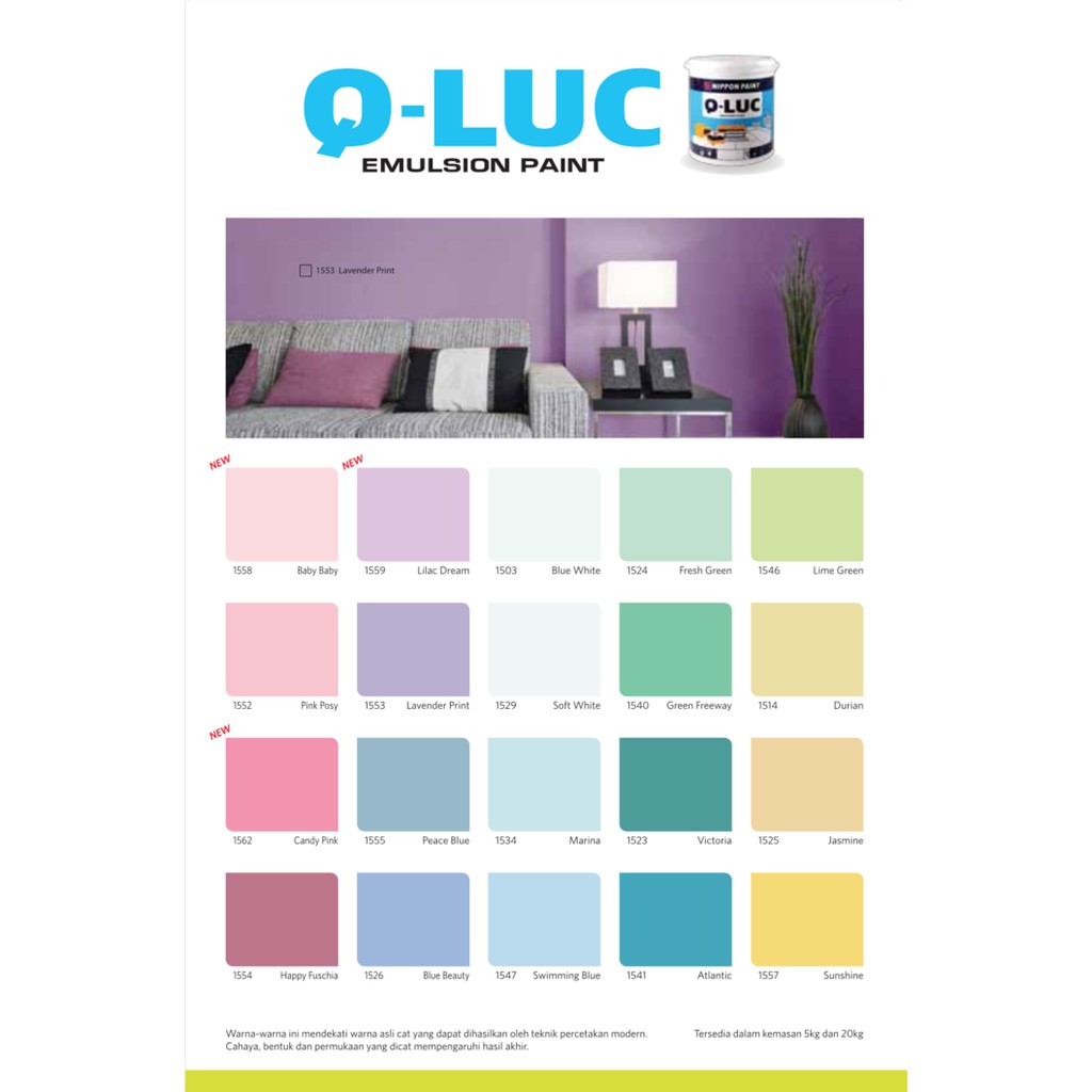 Cat Tembok Decorcryl Warna Ungu Muda Shopee Indonesia from cf.shopee.co.id We did not find results for: Maybe you would like to learn more about one of these? Check spelling or type a new query. Warna cat tembok ungu qluc.